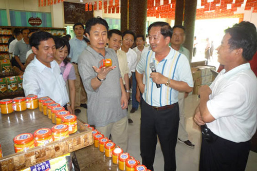 羅保銘省長等一行抵達我廠后,先后參觀了椰子粉生產(chǎn)車間、糖果生產(chǎn)車間、辣椒醬生產(chǎn)車間、產(chǎn)品展銷廳等,省長每到一處都仔細(xì)聽取匯報,了解車間的生產(chǎn)情況、產(chǎn)品的銷售情況以及公司發(fā)展過程中遇到的困難。