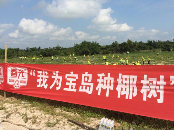 5月18日上午,在文昌市東郊鎮(zhèn)、龍樓鎮(zhèn)的200多畝閑置土地上,我司發(fā)起了“我為寶島種椰樹”公益綠化植樹活動,近千名春光員工將2萬棵椰苗義務栽種在了椰鄉(xiāng)大地上,在為家鄉(xiāng)添綠的同時,也為當?shù)剞r(nóng)戶無償構(gòu)筑起了未來椰子產(chǎn)業(yè)發(fā)展的基石。